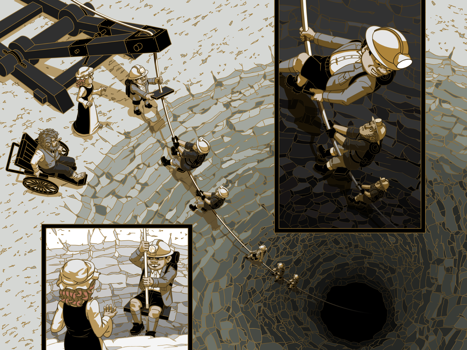 If the guys are worried about not having enough rop, then why did they waste so much of it before attaching the seats? the rope below the lowest guy dangles waaaaayyyy down the hole below him.